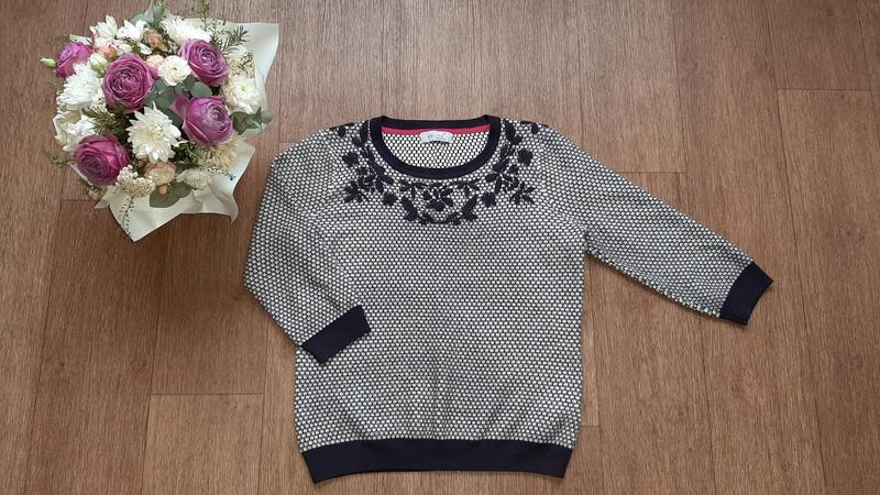 Тепла кофта з вишивкою по горловині. М'яка і приємна до тіла. Рукав укороченый. Фасон трохи вільний.