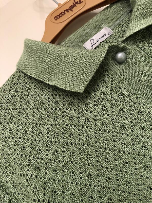 В'язка у два візерунка.Відмінно тримає форму. Довжина 60 см, напівобхват стегон 60 см