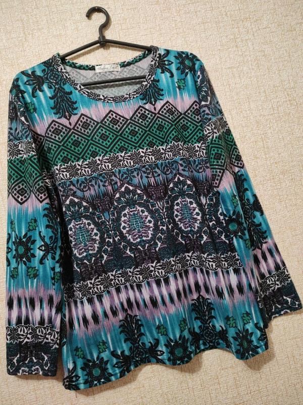 andrea коротка туніка принт розмір XXL/XXXL тонкий трикотаж з ворсом пог56-66 низ54-64 довжина 66 рукав 60 стан дуже хороший ідеальний