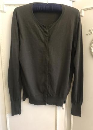 Шикарна кофточка на гудзиках від Closed. Відмінний склад:Коттон-90/, кашемір-10/. Колір-оливковий. Застібка на потайні гудзички. Фурнітура і обробка швів на висоті! Дуже жіночна і якісний виріб в прекрасному стані. Розмір на бірці XL. Заміри:довжина:-64 см, ПОГ-51 см, ПОБІДИ {гумка}-40 см, рукав-69 див.
