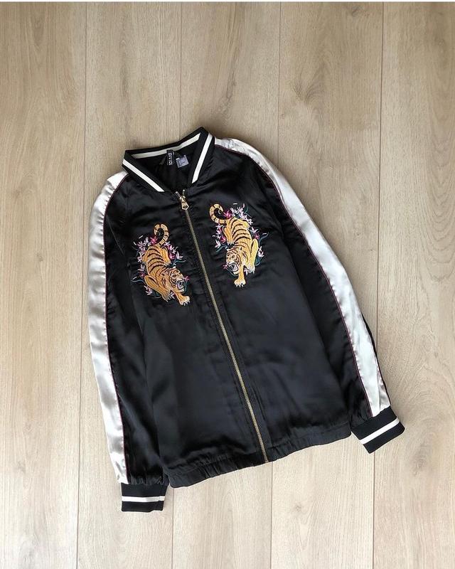Стильний бомбер на підкладці,стан ідеальний,розмір Л,обхват грудей 108,довжина рукава від горла 71 см