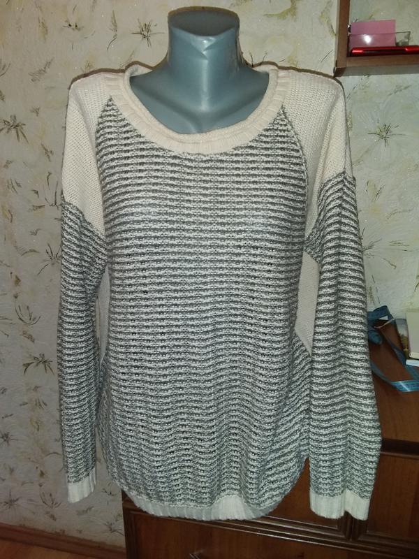 джемпер, размер указан L (батальная серия), но лучше смотреть замеры. этикетка с составом ткани срезана, по ощущению акрил. ткань не плотная, очень хорошо тянется. длина от плеча к низу 68. длина по спине 59. длина рукава от горловины 70. п/о груди 60-70, п/о внизу 58 - 72, п/о бицепс 18. 21.