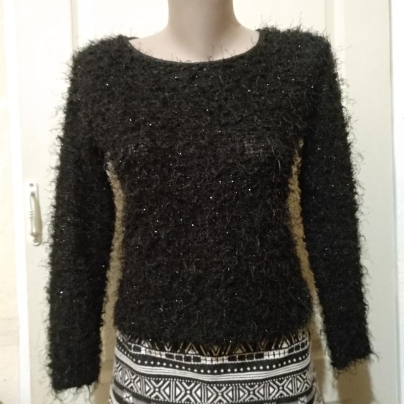 чорний трикотажний джемпер.довжина попереду-50см,ззаду трохи довше і низ закруглений.довжина рукава-52см.ПОГ-43см.ПІТ-40см.торг.або в подарунок двох покупок