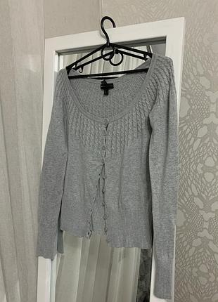Проштовхни кофту фірми Mango округлий Виріз глибокий Застібка - гудзики Стан - добрий Колір - сірий меланж Матеріал - трикотаж Розмір - s Довжина виробу - 53 см Довжина рукава по внутрішньому шву - 53 см Довжина в плечах - 42 см