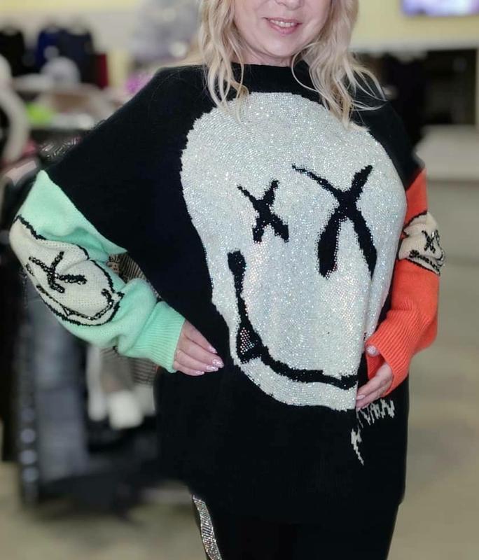 Шикарний джемпер з камінчики, дуже класний дизайн, стильний і модний. Розміри 48-56.