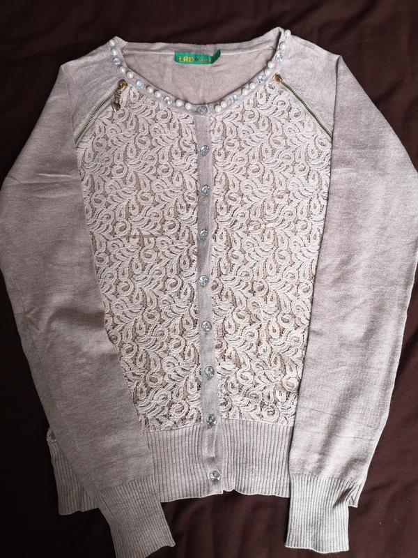 Гарна кофта на гудзиках. Розмір вказано S-M, але лутше буде на XS, S. Є маленький дефект - на одній блискавки відсутня петелька (на фото видно). Більше дефектів немає. Доставка: Укрпошта, Нова Пошта. Оплата: 100% на картку Приватбанку. Порядність гарантую.