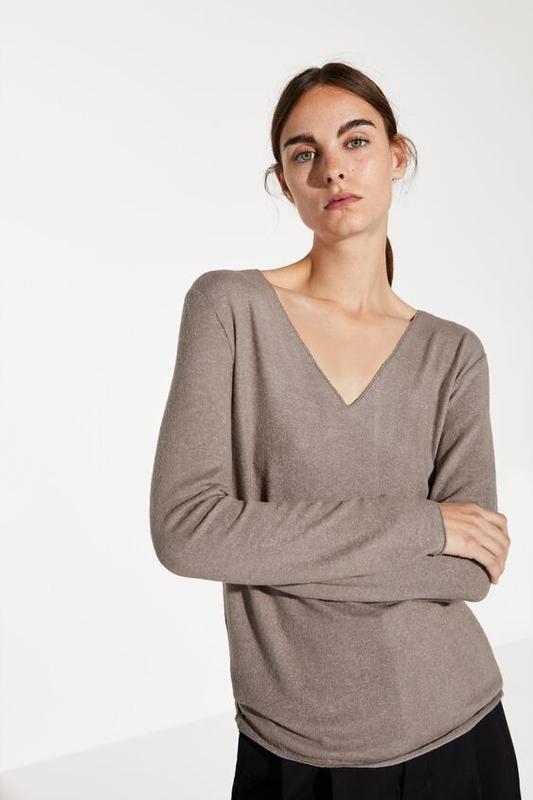 М'який джемпер красивого коричневого кольору Zara, розмір L, добре тягнеться. Без дефектів і нюансів. Заміри: ПОГ 50,5 ПІТ 48,5 Плечі 45,5 Діна від плеча 66,5 Довжина по боковому шву 45,5 Рукав 62,5/51