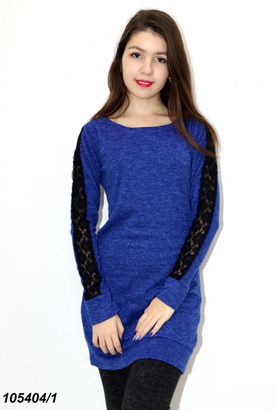 Туніка завмер 44 ПОГ 45 ПІТ 41 ПОБІДИ 47 довжина 81 тканина: ангора-меланж, оздоблена гіпюром ( 65%- віскоза, 30%-поліестер,5%-еластан)