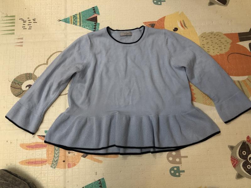 Продам теплу кофтину з Баскою небесного кольору ОГ 52 ВІД 54 По низу 67 Довжина 53