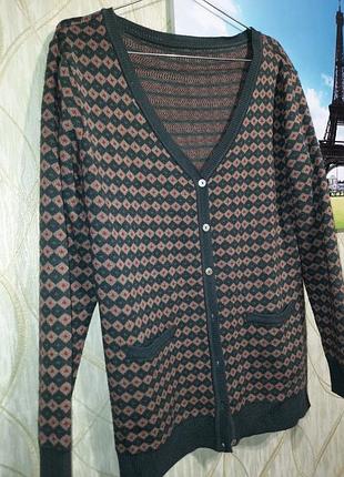 Кофта в ромбы, отличное дополнение гардероба. Качественная машинная вязка.Длинна-68, рукав-64, ПОГ- 57.
