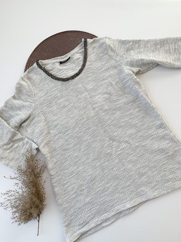 Легенька кофта, дуже близька до ідеального стану, єдине там де є кольє з камінчиками - пару вже немає. Але в очі це не кидається Рукав: 3/4 Розмір 42, але я його носила і на менший, просто був як oversize
