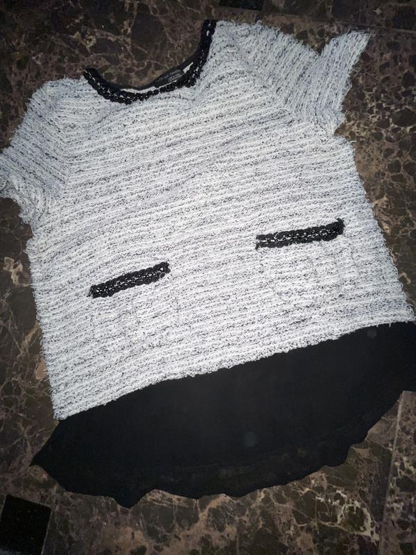 Класична кофта бренду Zara .зроблено в Туреччині .розмір М .меланж з вставками ланцюжків .кишені .знизу прозорий шифон .широкий крій ,бізнес варіант