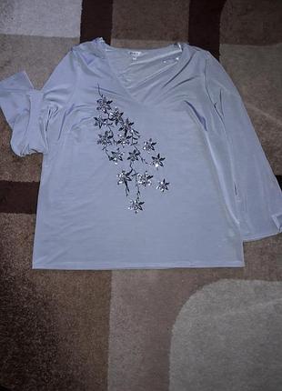 Гарна кофточка, спереду прикрашена квітами з паєток. Цікавий пошиття рукава. Добре тягнеться! Тканина микромасло(еластан). ПОГ - 64 см ПОТ - 63 см Довжина по спинці - 67 см