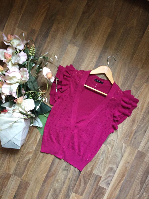Кофта George На пуговичках, лёгкая кофточка, красивые воланы на рукавах. Размер L Состояние 5+ (но нет последней пуговички, оторвалась) Длинна 56 см, резинка внизу ПО 35 см (тянется до 50 см)