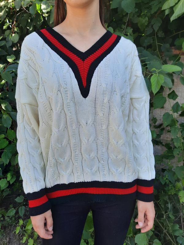 Джемпер білого кольору. Об'єм грудей 120 см. Довжина рукавів 42 див. Довжина 60 див.