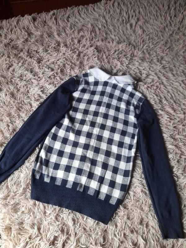 Джемпер в клітинку з воротнічком- обманкою. Маломірить.
