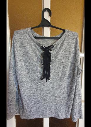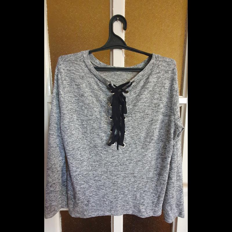 чудова кофтинка з романтичними шнурками, які регулюються. Можна зробити більш відвертим декольте або навпаки його приховати