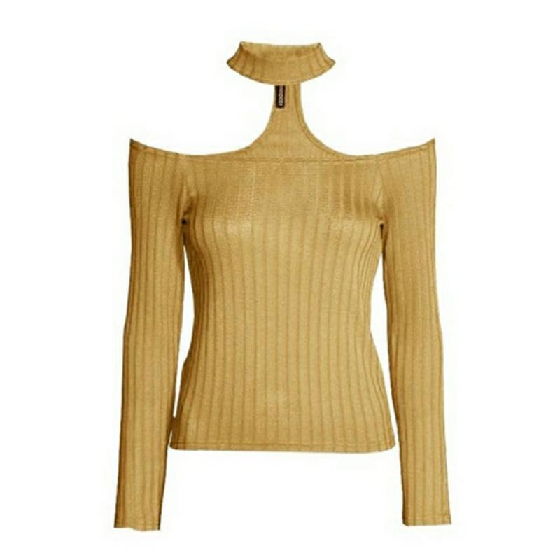 Незвичайна кофта з відкритими плечима, додасть ще більшої привабливості Вашому образу. З додаванням золотої нитки. Спина відкрита. Размер S: Ширина под мышками 34,5см, длина от плеча 48см, длина рукава - 52,5см; размер М: ширина под мышками 40см, длина от плеча 50см, длина рукава 53,5см.