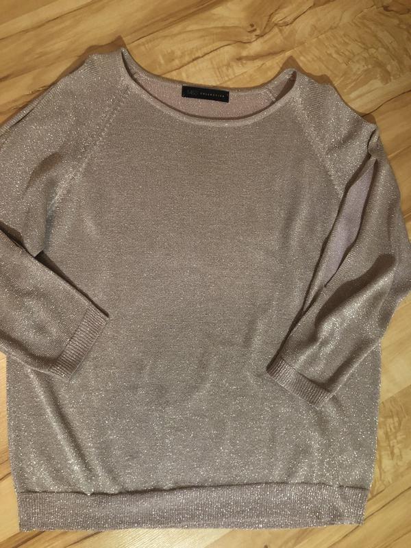 Джемпер «і в світ, і в бенкет». Тканина з люрексом, з приємним м'яким блиском при направленому світлі. М'який, не колеться. По зовнішній стороні рукава розрізи. Розмір вказаний 10. Заміри за запитом.