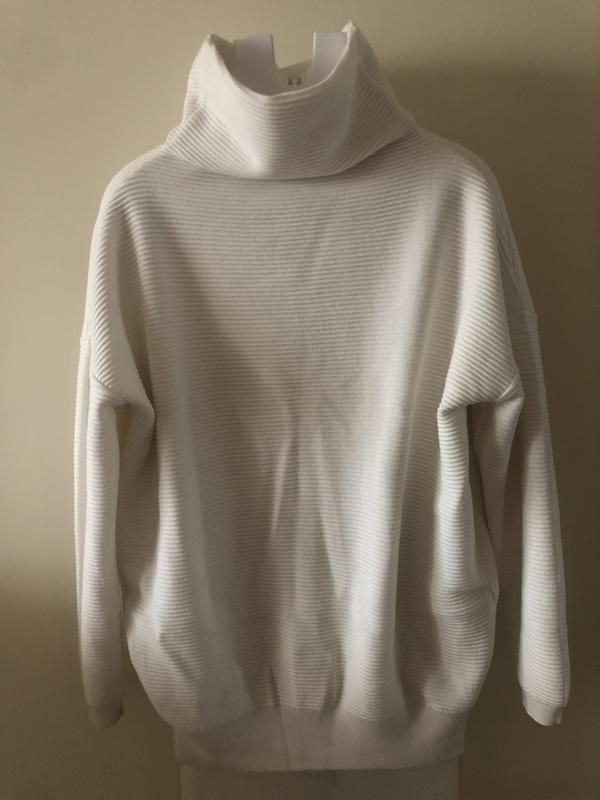 Красивый удлинённый джемпер с хомутом бело-молочного цвета на размер L