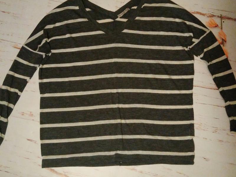 Тоненький светр в хорошому стані. Сірий в білу смужку з спущеними плечовими швами
