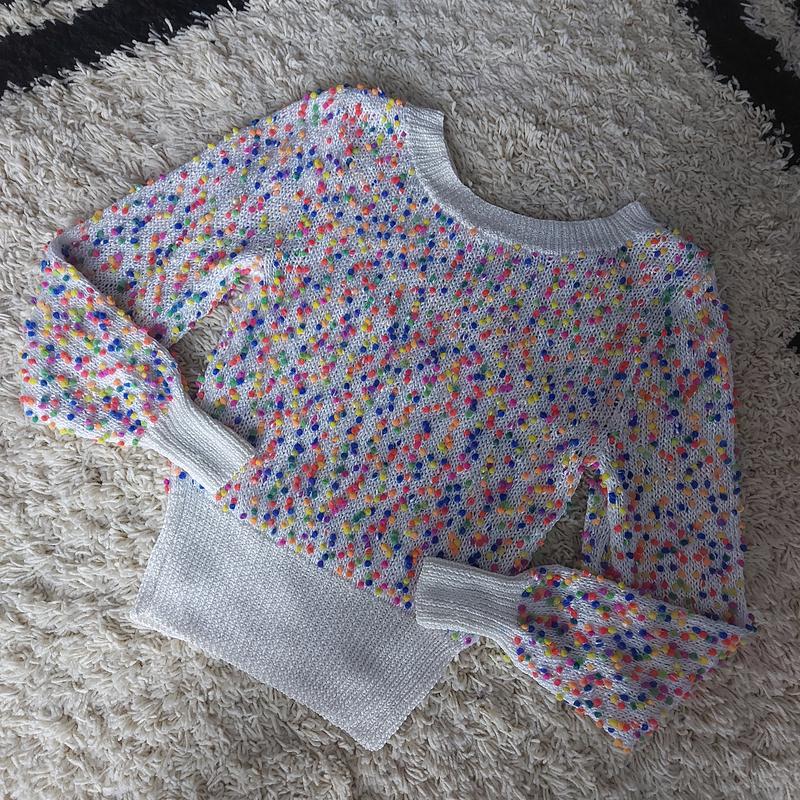 Очень оригиналтная и приятная к телу кофточка с бубончиками. Состояние новой.
