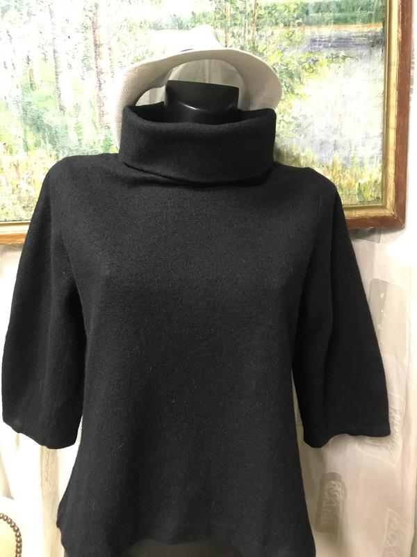 Шикарный, ооочень стильный джемпер чёрного цвета с высоким горлом от COS. Состав:шерсть/коттон (60/40). Рукав 3/4, высокое широкое голо. , а-силуэт. Шерсть плотная, отлично держит форму. Ооочень эффектно с брюками палаццо. Размер по бирке -S. Замеры:длина-56 см, ПОГ-47 см, ПОБ-53см.