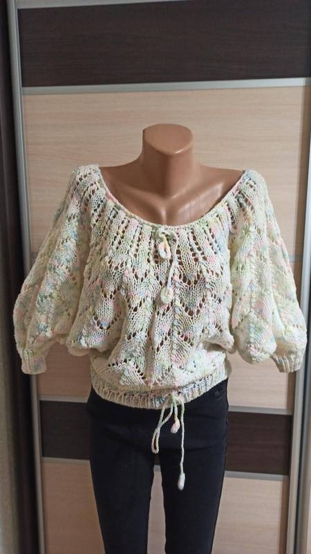 Бирок нету, думаю ручной работы Длина 48см ПОГ свободно ПОТ 37-44см ( можно меньше, стягивается на шнурочках) Полуобхват рукава снизу 7-10см