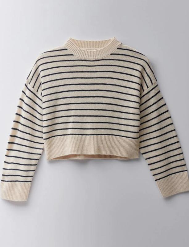 Короткий светр бренду House Новий, дуже гарний, всі бірки на місці (на жаль, не підійшов розмір) Актуальний, лаконічний тренд цього сезону — принт в смужку. Розмір на бірці M, підійде на S (джемпер сидить oversize), відмінно тримає форму Довжина: 48 см Склад: 60% акрил, 40% віскоза Залишилися питання — пишіть в лс.