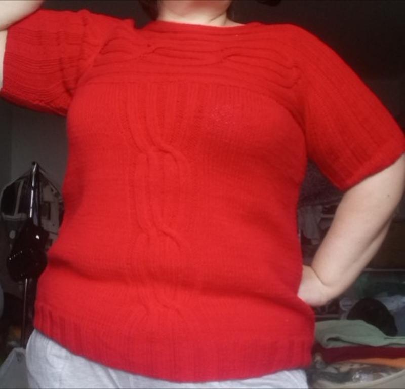 В'язана кофтинка мною. Нитка бавовна щільна вязка. Тягнеться. Одягнена на ПОГ 124.ПОСтегон 138. Думаю на меньший 'розмір буде краще. Не носилася запахів не має.