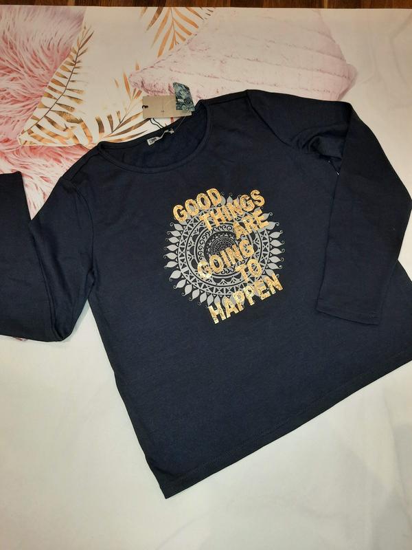 дуже м'яка і приємна до тіла кофтинка, тканина платна. Принт виконаний якісно. Склад 65%поліестер 35%коттон . Ширина плечей 38 см ПОГ 50 см Довжина 56 см Довжина рукава 58 см