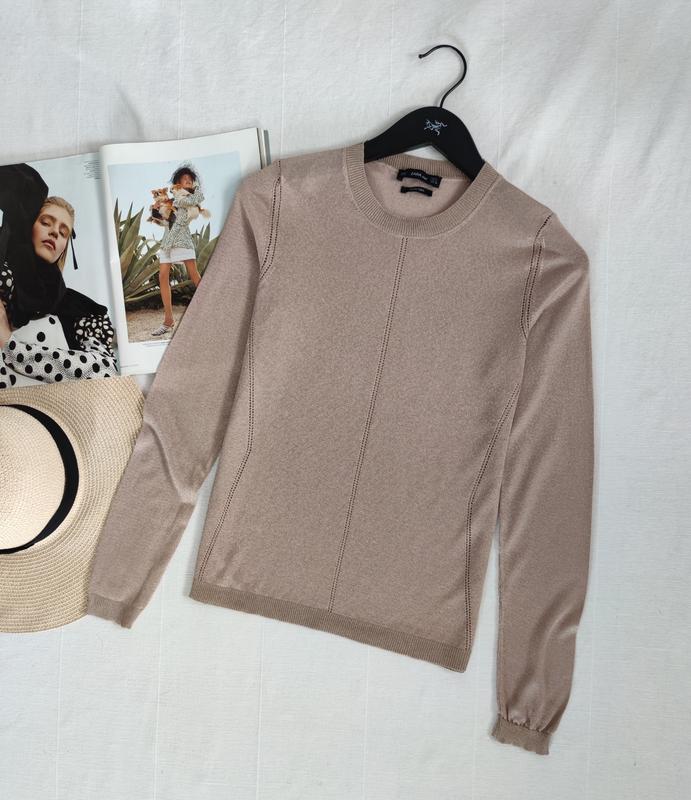 🌿бежевий светр італійської пряжі від Zara прямого крою Розмір:М, підійде для S Заміри:ПО грудей 40 см, довжина 57 см, довжина рукава 62 см