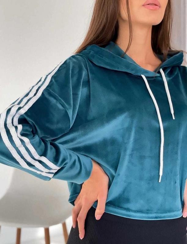 1 Артикул 91332855 🔥🔥🔥РАСПРОДАЖА🔥🔥🔥 Мод. 1578 Укороченное Худи. ФОТО РЕАЛ. ✔Размеры - oversize (42-46) ✔Ткань - Велюр SPORT. Цвета: черный, темно-синий, бежевый, оливка, мята. Супер качество! Стильно MODNO!!!