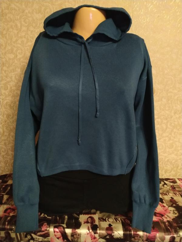 Худі Розмір вказано S (44-46-48) Ширина груді 56 см Тканина трикотаж Не тонкий Без утеплення Плече подовжене Рукав приспущений Колір синє зелений Ідеальний стан Заміри на останніх фото