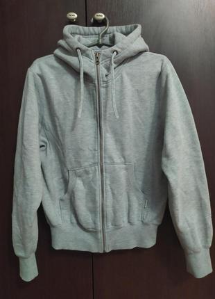 Стильная толстовка-худи на молнии с накладными карманами. На левом рукаве вышиты нитками буквы и такие же точно буквы на капюшоне. Удобный капюшон защитит в ветреную и прохладную погоду. Худи на флисе, что делает ее достаточно теплой для холодной осени и евро-зимы. Отличный вариант для занятий спортом, туристических походов и обычных прогулок. Общее состояние - идеальное, практически новое. Без дефектов и пятен. Некоторые замеры указаны на последних фото. Основные замеры: Ширина в плечах - 45см; Длина рукава от плеча - 61см; Ширина ворота капюшона - 26см; Длина плеча от ворота капюшона - 10см; Указан размер М, поэтому лучше ориентироваться на замеры. Продается без возврата, поэтому внимательно смотрим фото, задаём вопросы и покупаем. Всех приглашаю на свою страницу - там много интересного)