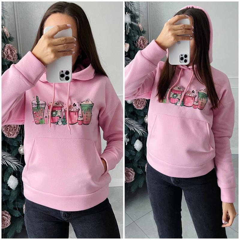 Худі арт. am. 352/1352 Розмір: 42-46, 48-52 Ціна 550 грн Найзимовіший худі з тринитки на флісі подарує вам не тільки тепло і затишок, але й відмінний настрій. Манжети на рукавах та внизу, кишеня кенгуру попереду, зручний глибокий капюшон зі шнурком, ідеальна довжина. Худі oversize-крою зі спущеним плечем легко впишеться у щоденний ваш образ або створить настрій у неформальній святковій атмосфері. Принт відмінної якості, термонакат. Кольори: молоко, ніжно-рожевий