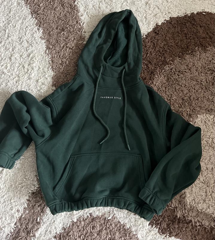 Укороченное худи очень клеящее качество ткань не скатывается Размер универсальный подойдет на хс,с и м Очень красивый цвет в живую желаемость фото не передает цвет (цвет насыщенный темно зеленый)