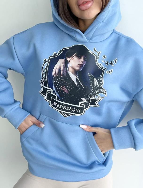 Нова колекція якісних худі з наклейкою відомого фільму "Венздей".🥰 Дуже круті,стильні та неймовірно якісні худі.🤩 Чудово підійдуть до будь-яких джинсів,лосінків.💣❤ Мегаа теплі,не кошлатяться🔥 Приємна до тіла тканина. Зручне оверсайз худі буде комфортно носитись💣💣💣 Тканина:Тринитка на флісі Кольори:Чорний,Блакитний,Червоний❤🤩 Розмір:42-44,46-48,50-52 Відправка по Україні: Новою Почтою-Повна оплата або накладним платежем по мінімальній передплаті) УкрПочта-лише повна передплата.