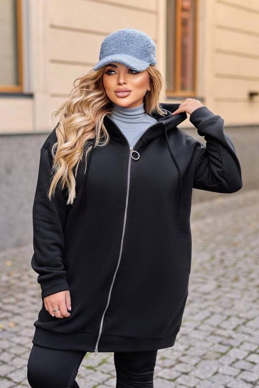 💥💥Хіт осінь 2022💥💥 💛💙Зроблено в Україні💛💙 🔥🔥Будь на стилі🔥🔥 ✅мод.185/6061 ✅Стильна подовжена толстовка на блискавці оверсайз. Нашивка на капюшоні . ✅Тканина: тринитка на флісі.🔥🔥 ✅Розмір:48-52,54-58,60-64 ✅Колір:чорний,меланж,мокко, ✅48-52 О.Г-126.,О.Б-128.1РУКАВ-74.,довжина-87 ✅54-58 О.Г-138. О.Б-140. РУКАВ-74.,довжина-87 ✅60-64 О.Г-150.,О.Б-152.,рукав-74.,довжина-87 ~•~•~•~•~•~•~•~•~•~•~•~•~•~