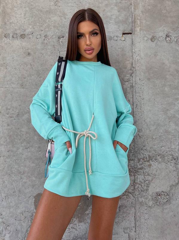 Знову в наявності 😍 Тканина петля турецька, добра в носкі не кошлатиться 🥰 Шнурочок можно зав’язувати на різні боки, завдяки чому має різний вигляд 😍, або зовсім його знімати і буде як оверсайз 🔥 Колір беж, оранж і м’ята Ціна 630грн Модель 173 Розмір 42-48 Довжина виробу 75см, довжина рукава від горловини 73см, ширина п/о 60см, по бокам є карманчики 😁