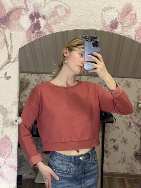 Укороченная кофта от бренда topshop подойдет на размер xs-m