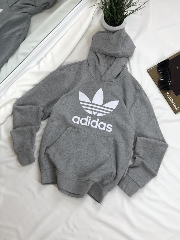 Сіре худі Adidas🤍 В ідеальному стані❗️ Розмір вказано підлітковий,також гарно ляже на С,невелика М За деталями в direct💌