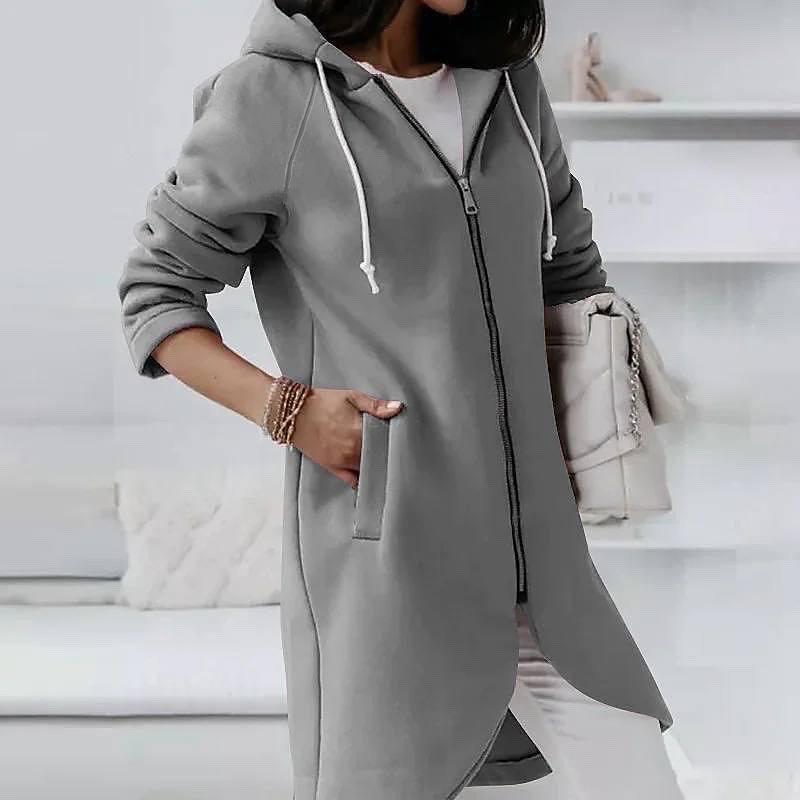 Подовжене худі на блискавці арт. gr. 8317 Подовжене худі з капюшоном, є бокові кишенямі, тепло і зручно у прохолодні дні та вечори. Це завжди актуальна річ у повсякденному житті. Зручно, комфортно та тепло. Обирай актуальну новинку осені. Розмір: 42-46; 48-52 Тканина: тринитка на флісі Колір: мокко, чорний, сірий меланж, хакі, джинс