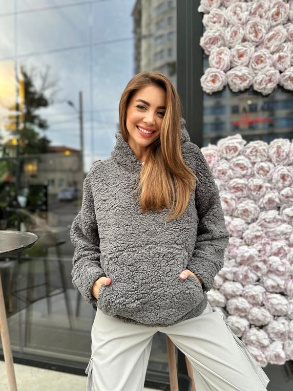 Худі оверсайз кенгуру арт. sof. 2104 Тканина: об'ємне хутро барашек Розмір: 1(42-44), 2(46-48)