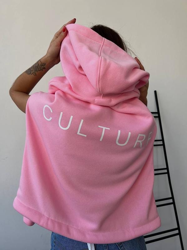 Арт 824-1378 🔸Худи CULTURE ▪️Ткань: турецкая трехнить на флисе ▪️Размер: 42-48 (oversize) ▪️Цвет: черный, зеленый, розовый Цена 610 грн WoW новинка Стильный теплый худи оверсайз с макси надписью на спинке Регулирующая шнуровка по низу позволяет носить худи в удлиненном варианте и укороченным, затянув поясок Глубокий капюшон, спущенная линия плеча, манжеты из основной ткани. Качественная накатка ЗАМІРИ ВИРОБУ 42/48 Длина 70 см ОГ 130 см Рукав от ворота 77см