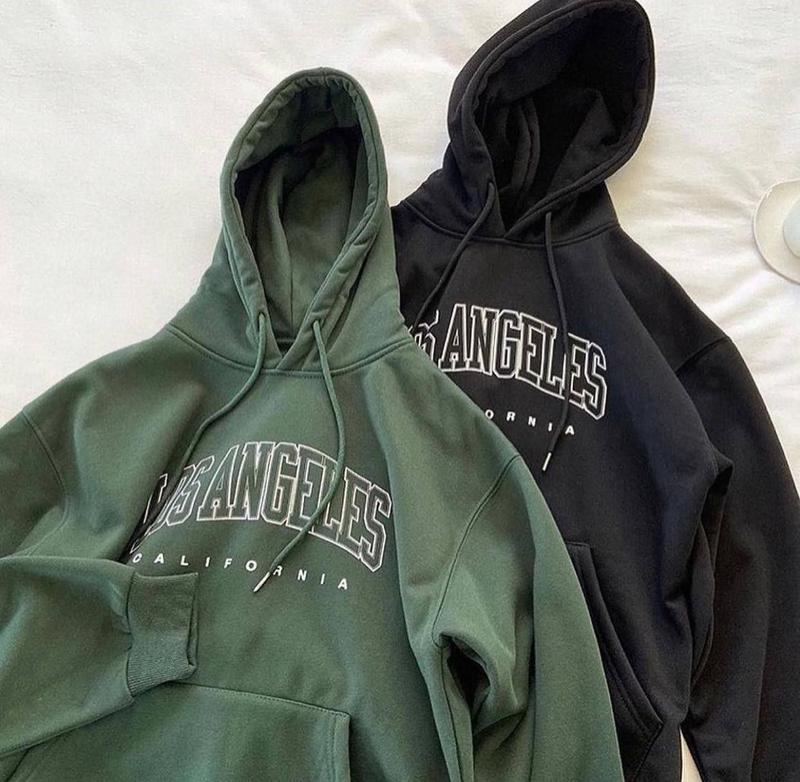 Арт 1526-2327 Худі Oversize "LA" тканина : якісна трьохнитка НА ФЛІСІ колір: чорний, темно зелёной розмір: 42-48 (оверсайз) _ Круті утеплені худі кенгуру Oversize крою з трендовим принтом Манжети з основної тканини; глибокий одношаровий капюшон, чорні шнурочки. Якість Заміри: 42-48 ОГ 118 см _ Довжина 65 см Рукав від ворота 73 см