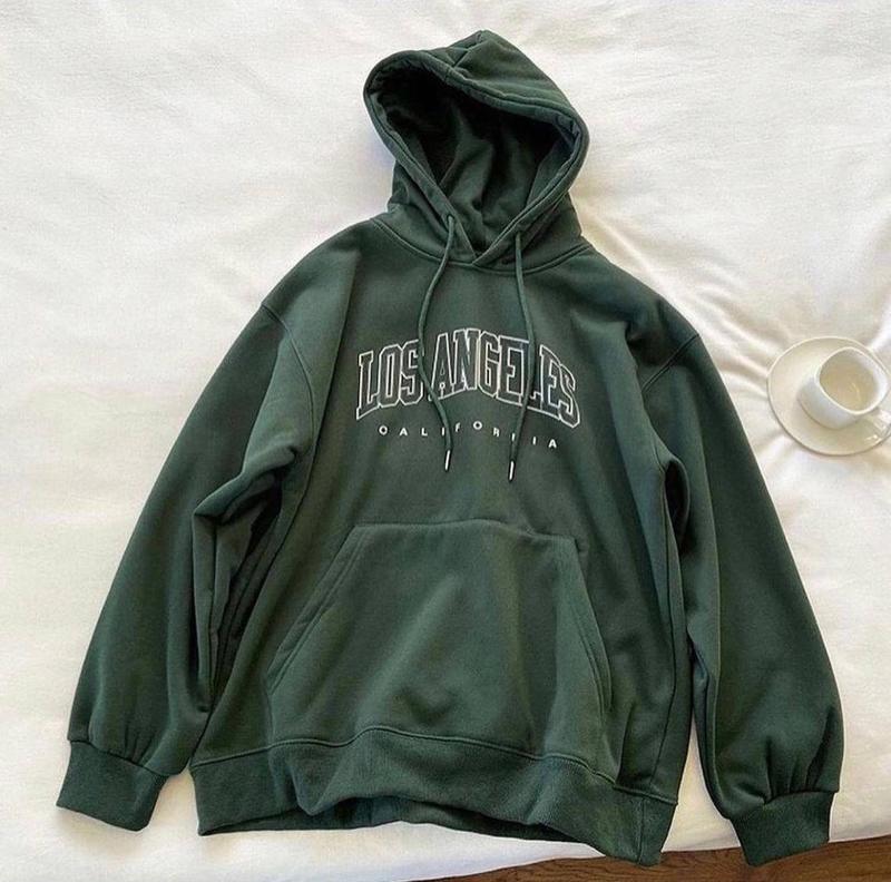 NEW🔥 Basic style 🔺Худі Oversize “LA” Ціна: 539грн модель ba 2327 тканина : якісна трьохнитка НА ФЛІСІ колір: чорний, темно зелёной розмір: 42-48 (оверсайз) Круті утеплені худі кенгуру Oversize крою з трендовим принтом 🔥🔝 Манжети з основної тканини; глибокий одношаровий капюшон, чорні шнурочки. Якість🔝 Заміри: 42-48 ОГ 118 см Довжина 65 см Рукав від ворота 73 см