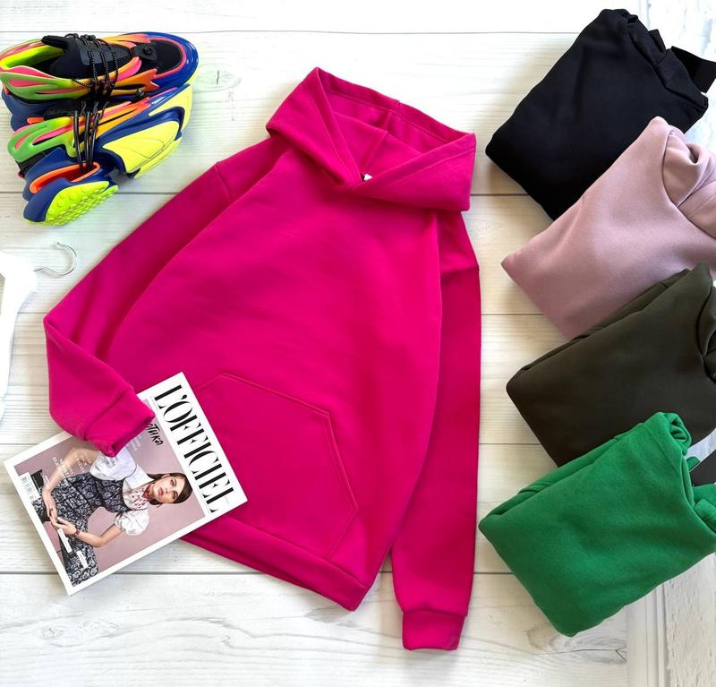Худі на флісі рр 42-46 / 48-50 материал: трехнитка с начесом (54) длина: 65см цвета: черный, малина, хаки, фрез, зеленый