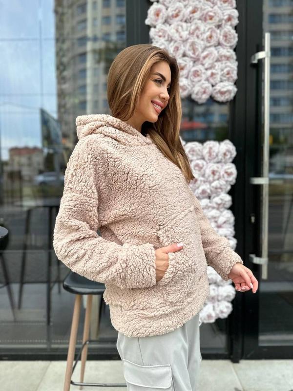 Кофта женская Арт: 2104 Размер: 1(42-44) 2(46-48) Опис: кофта оверсайз,кенгуру - размер 1(42-44) ОГ 124 - размер 2(46-48) ОГ 130 Замеры выполнены по верху изделия, возможны отклонения несколько сантиметров от измерений Тканина: объемный мех барашек Цена 580грн🤍