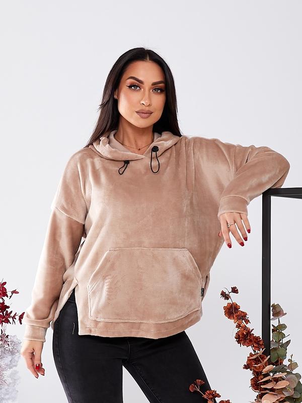 Худі жіноче Мод 260 Тканина: тринітка на хутрі турецька Розміри: 46/48, 50/52, 54/56, 58/60 Кольори : бежевий Виміри: 46/48 - Довжина по спинці 75 см, спереду 68 см, рукав від плечового шва 45 см. ОГ 140 см 50/52- Довжина по спинці 78 см, спереду 70 см, рукав від плечового шва 46 см. ОГ 146 см 54/56- Довжина по спинці 80 см, спереду 72 см, рукав від плечового шва 47 см. ОГ 152 см 58/60- Довжина по спинці 83 см, спереду 74 см, рукав від плечового шва 48 см. ОГ 158 см